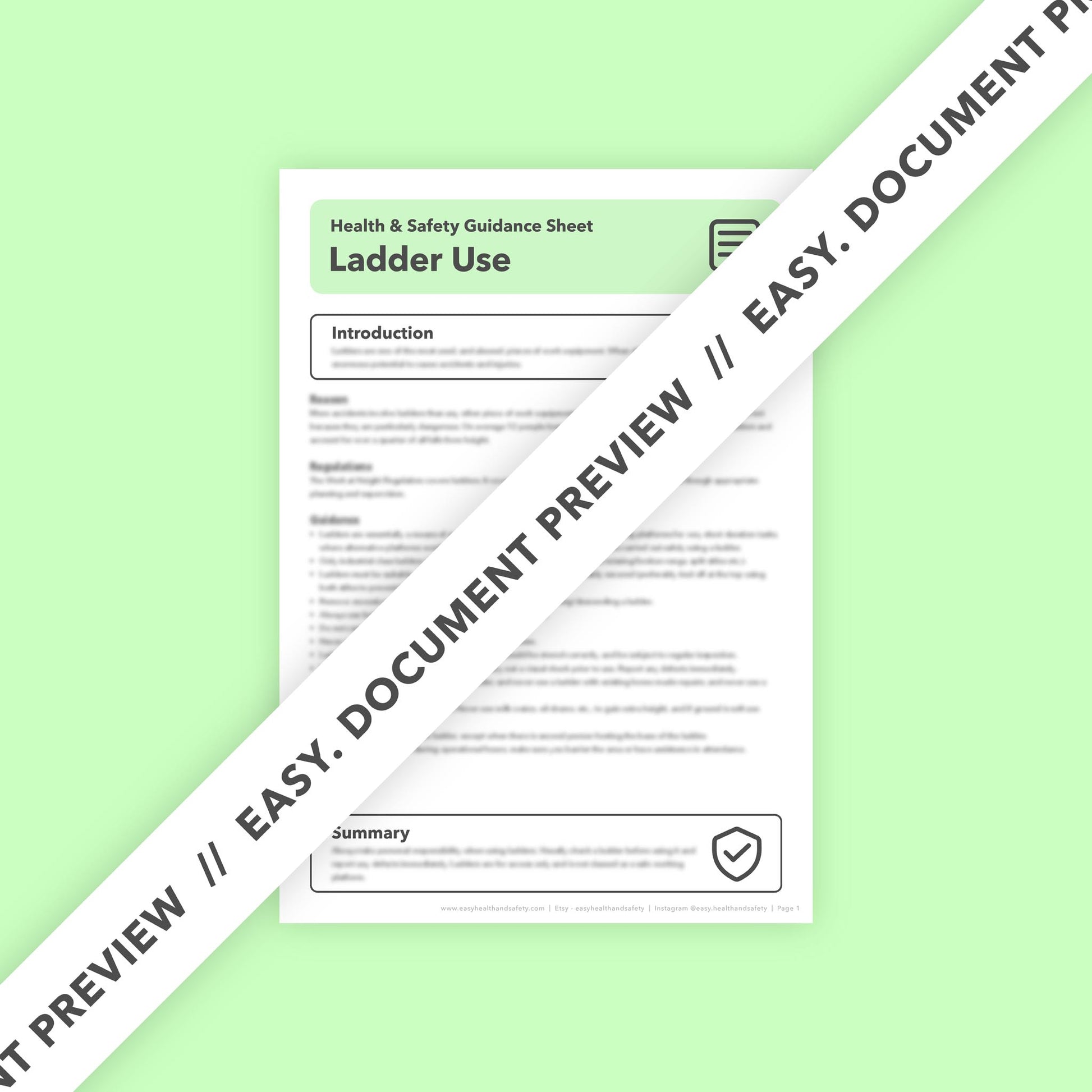 Each guidance sheet provides an overview of the subject matter, in this case Ladder Use, along side essential information, regulations and good practice advice for applying health and safety legislation within your workplace. There's also a summary section covering the main learnings of the sheet.