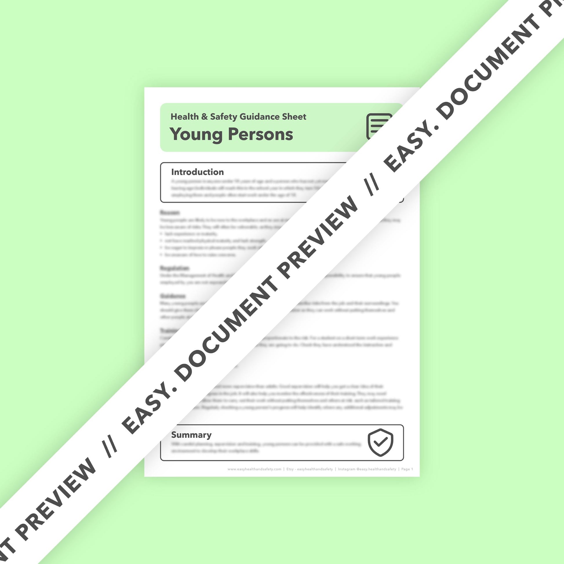 Each guidance sheet provides an overview of the subject matter, in this case Young persons in the workplace, along side essential information, regulations and good practice advice for applying health and safety legislation within your workplace. There's also a summary section covering the main learnings of the sheet.
